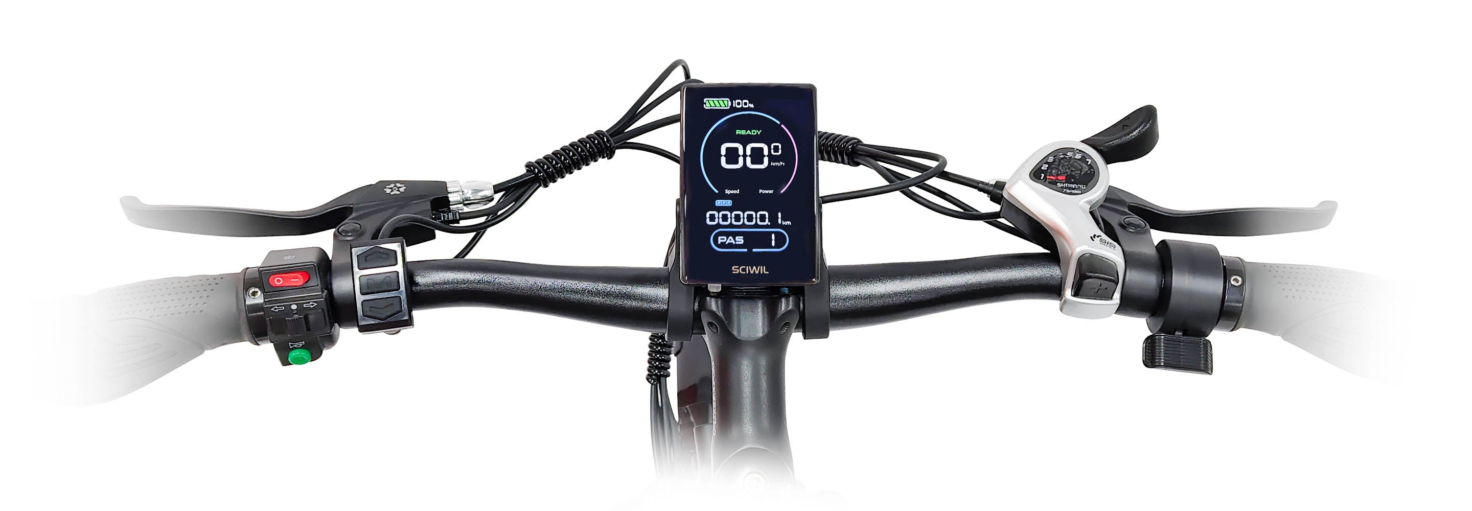 The Backlit LCD display provides infomation on speed,mileage,power etc